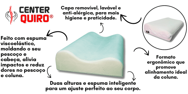 O travesseiro anatômico ortopédico da Center Quiro®, é o travesseiro ideal pra você que quer ter uma ótima postura na hora do seu sono.